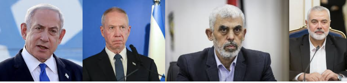Left to right: Benjamin Netanyahu, Yoav Gallant, Yahya Sinwar, Ismail haniyeh. No high-quality photos of Deif are available, as he is very secretive.