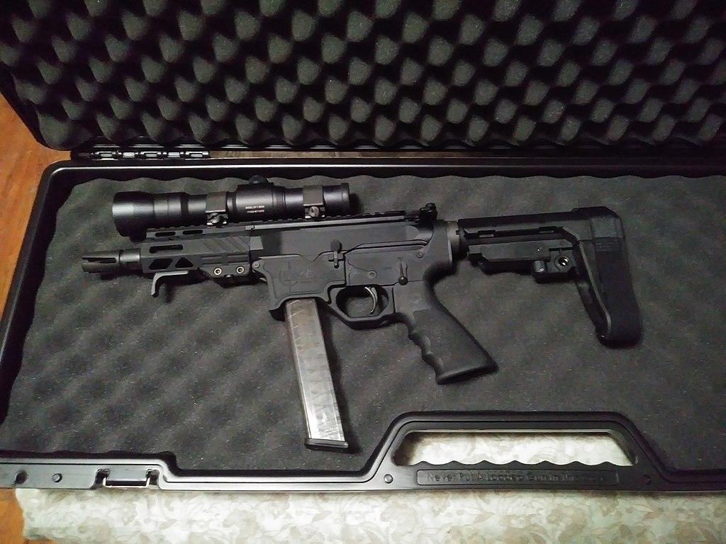 Number One: No, a pistol doesn’t magically fire a larger caliber once it has a brace and larger magazine. Biden disagrees though. Image: A Glock Handgun with a stabilizing brace and a telescopic optic. (Google Images)